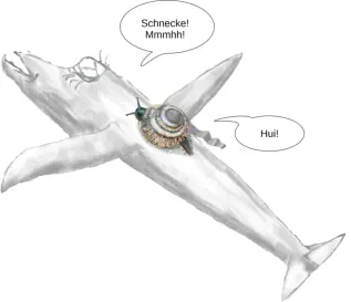 Der Zünsler als Falter fliegt und sucht den Buchs. Die Schnecke