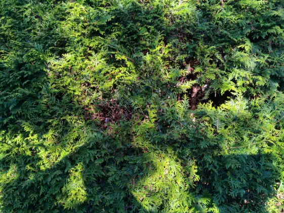 So kann in einer Hecke aus Lebensbäumen schon mal ein